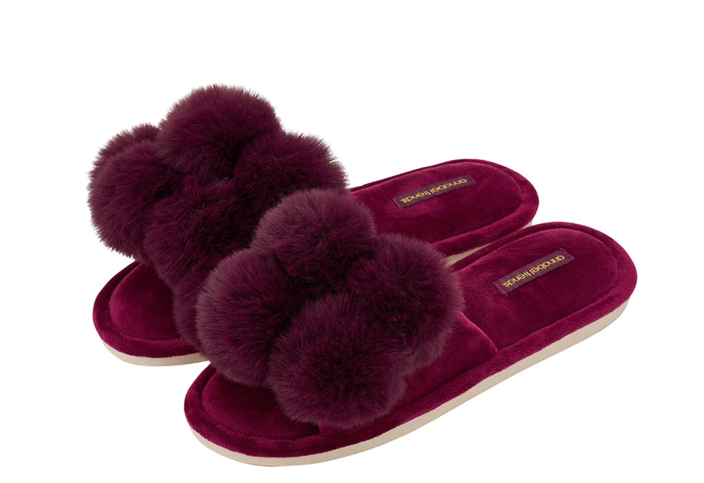 Annabel Trends / Cosy Luxe Pom Pom Slipper - Mulberry