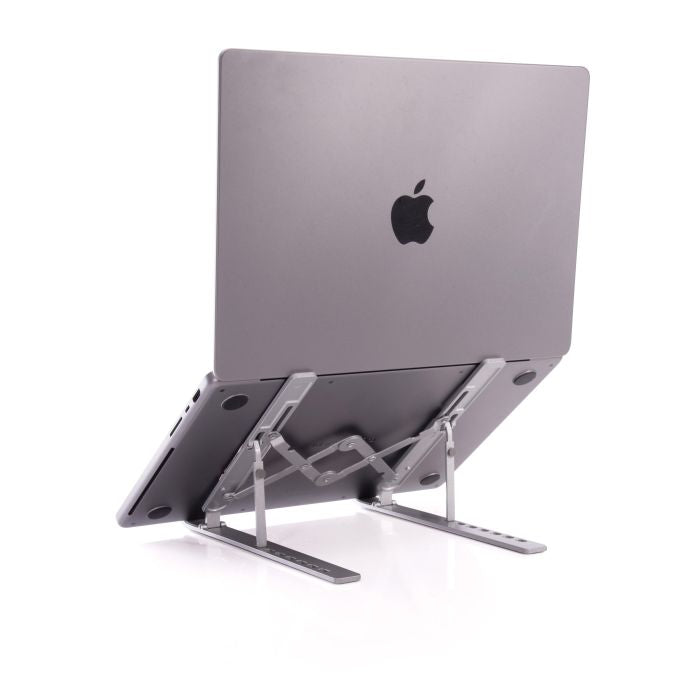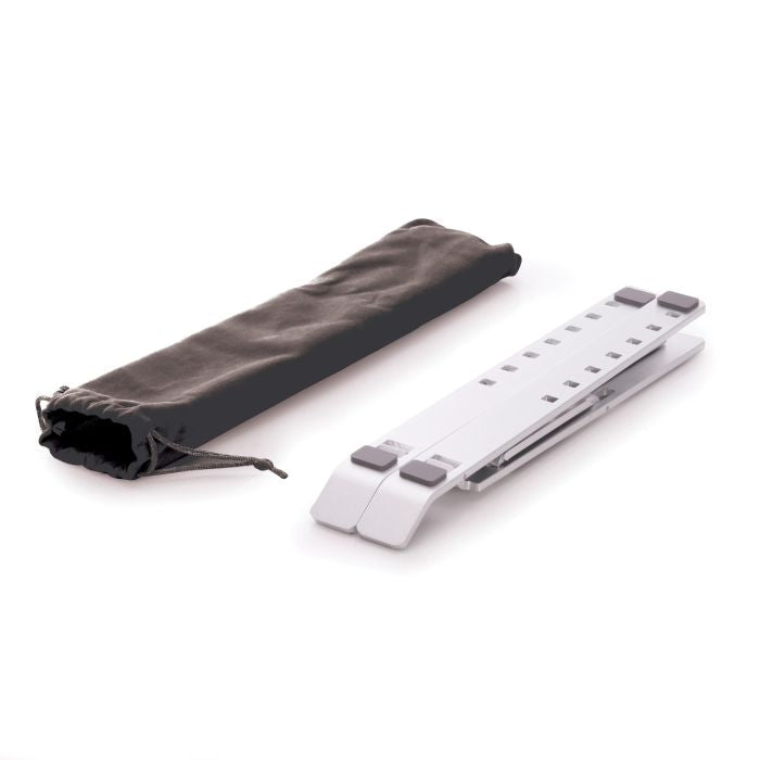 This lightweight aluminium alloy stand holds books, tablets and laptops, and folds flat for easy transportation.